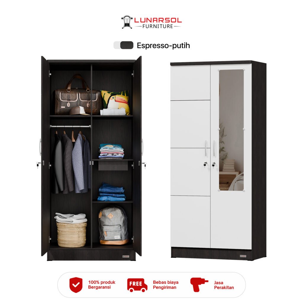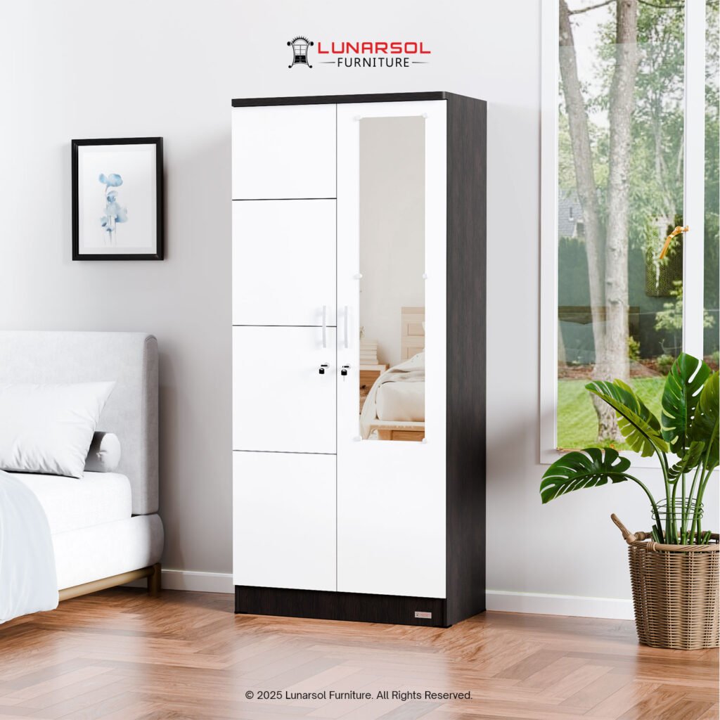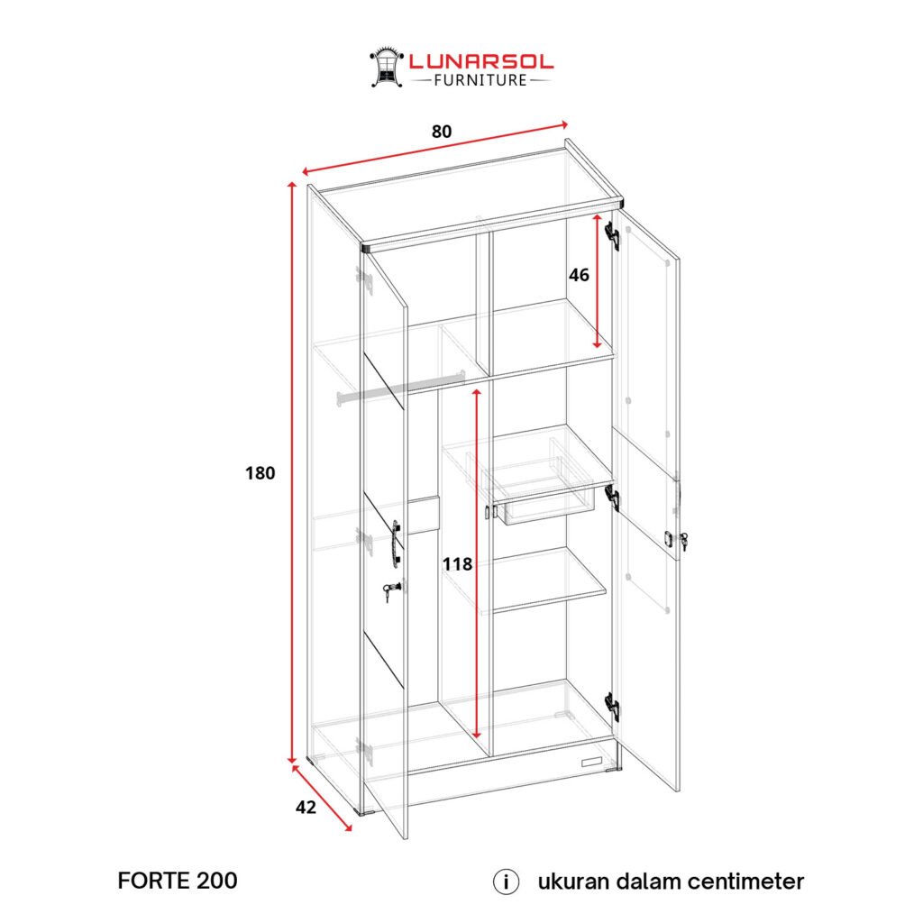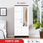 Hadirkan solusi penyimpanan yang aman dan bergaya untuk kamar tidur Anda dengan Lemari Pakaian 2 Pintu Minimalis Modern FORTE 200. Desain modern dengan kombinasi warna White Espresso memberikan tampilan yang elegan dan mudah dipadukan dengan berbagai dekorasi. Lemari ini dilengkapi dengan cermin berukuran proporsional pada salah satu pintunya, memudahkan Anda dalam berpenampilan. Interior dirancang dengan ruang penyimpanan pakaian yang luas dilengkapi dengan gantungan hanger untuk menjaga pakaian tetap rapi. Keamanan barang berharga Anda terjamin dengan adanya laci di dalam lemari yang dilengkapi dengan kunci pengaman. Lemari ini juga dilengkapi dengan kaki anti slip untuk stabilitas.
