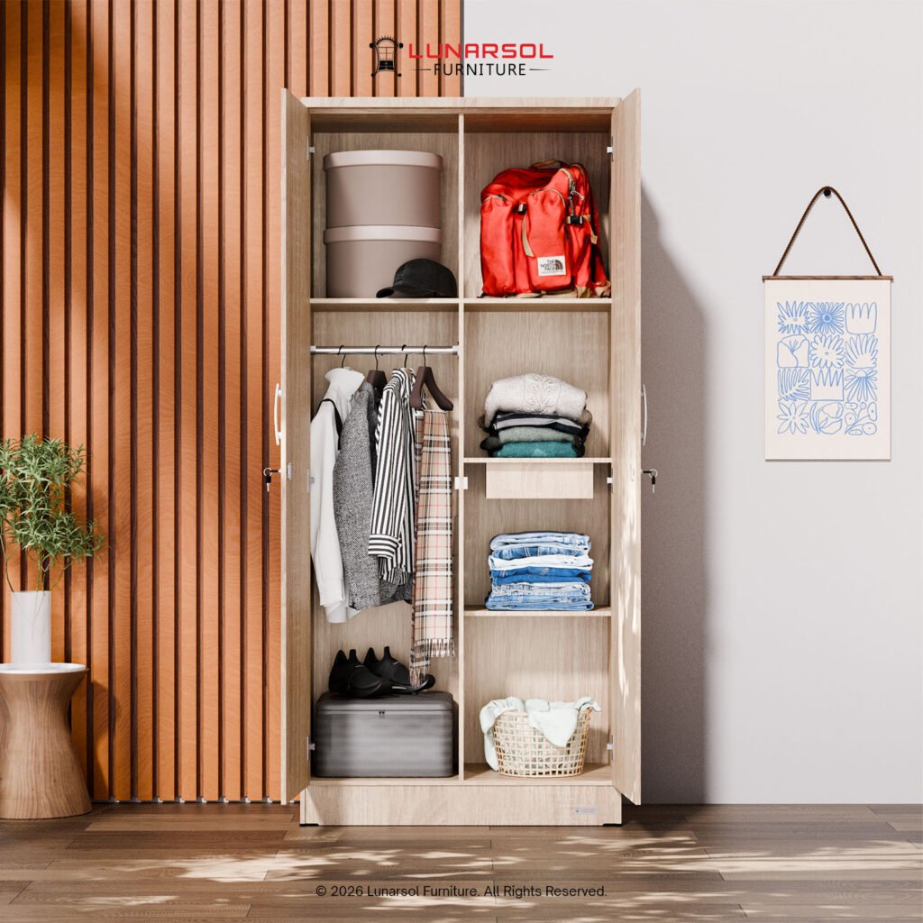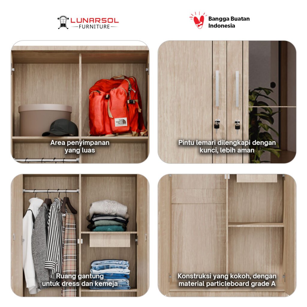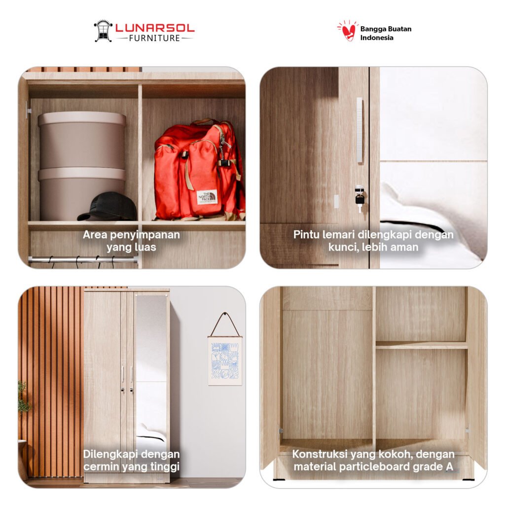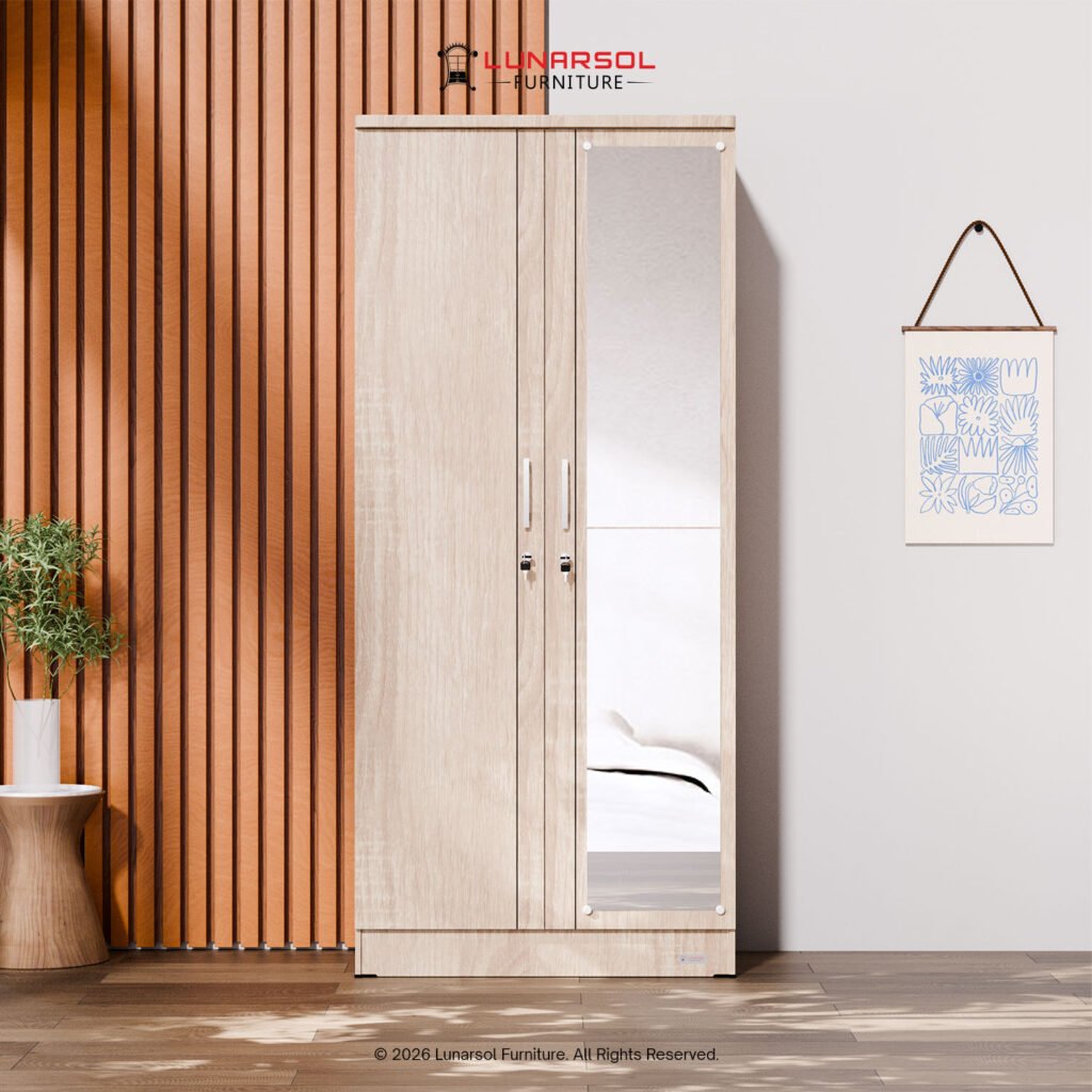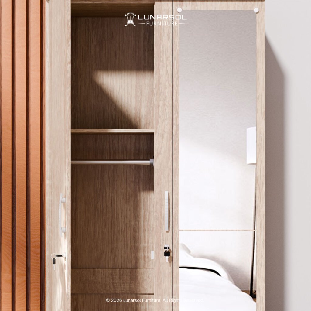 Lengkapi kamar Anda dengan lemari pakaian 2 pintu cermin full body LUNARSOL LPT 027. Lemari ini memadukan desain minimalis yang elegan dengan fungsionalitas maksimal, menjadikannya solusi ideal untuk ruangan dengan dimensi terbatas. Dibuat dari material kayu berkualitas tinggi, lemari ini kokoh dan tahan lama. Desainnya yang minimalis dengan perpaduan warna Oak Muda dan putih memberikan sentuhan natural dan cerah pada kamar Anda.