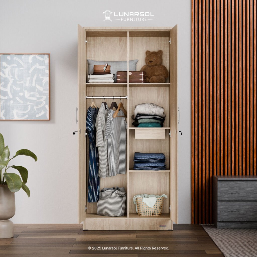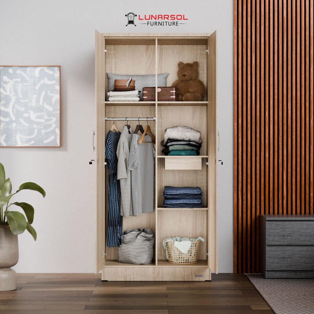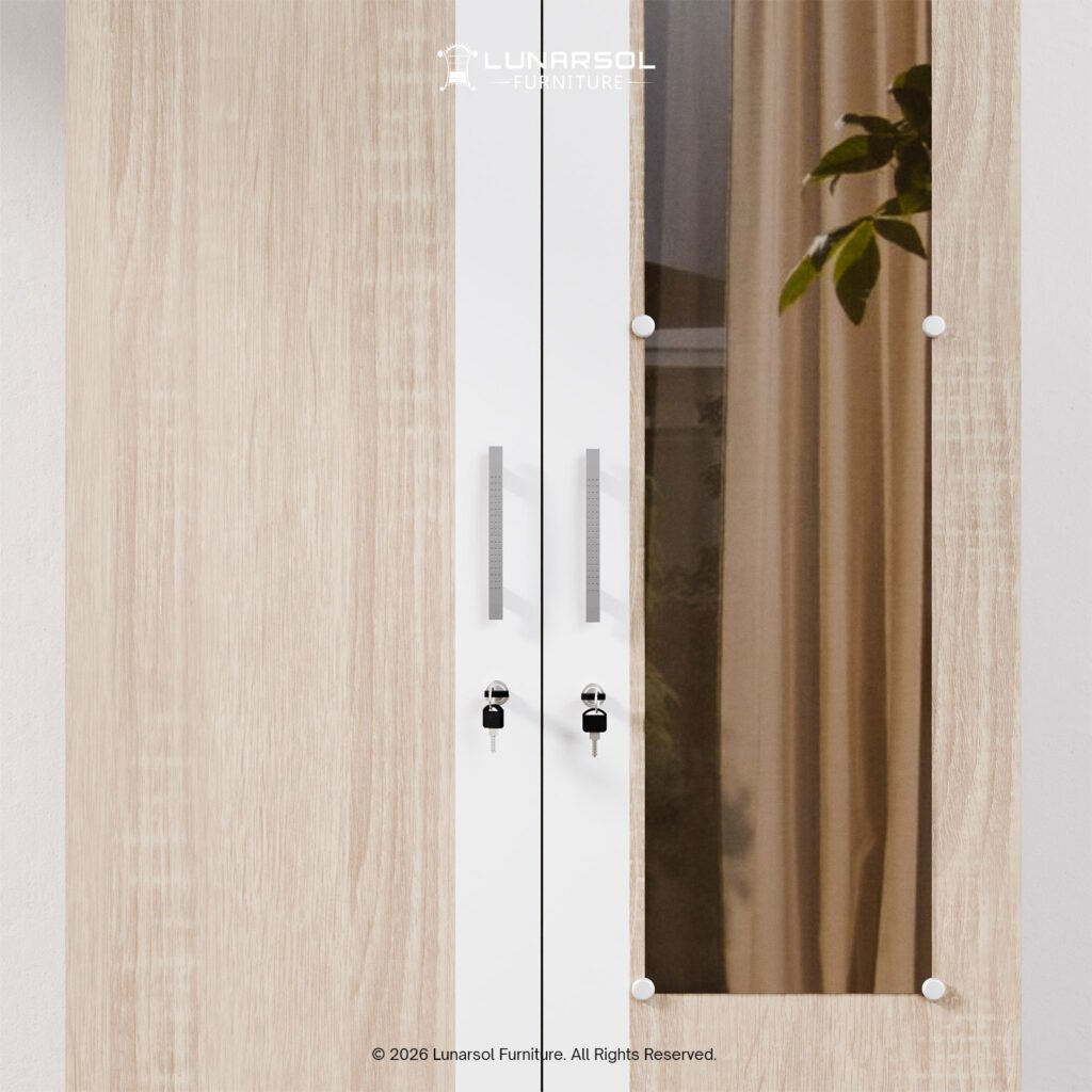 Optimalkan ruang Anda dengan lemari pakaian minimalis 2 pintu LUNARSOL LPT 011. Lemari ini memadukan desain modern yang elegan dengan fungsionalitas maksimal, menjadikannya solusi ideal untuk ruangan dengan dimensi terbatas. Dibuat dari material kayu berkualitas tinggi, lemari ini kokoh dan tahan lama. Desainnya yang minimalis dengan perpaduan warna Oak Muda White dan Marble memberikan sentuhan mewah pada kamar Anda.