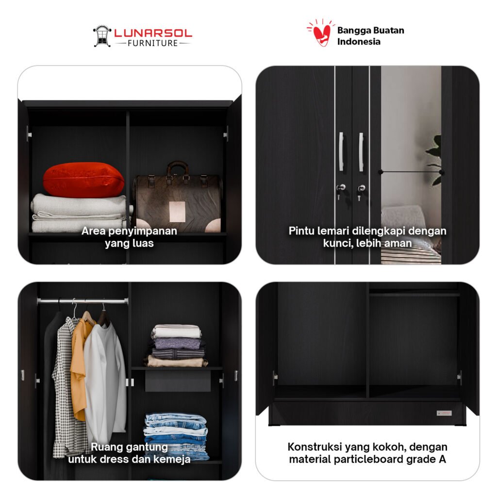 Percantik kamar Anda dengan lemari pakaian 2 pintu Walnut LUNARSOL LPT 026. Lemari ini memadukan desain modern yang elegan dengan fungsionalitas maksimal, menjadikannya solusi ideal untuk ruangan dengan dimensi terbatas. Dibuat dari material kayu berkualitas tinggi, lemari ini kokoh dan tahan lama. Desainnya yang minimalis dengan warna Walnut memberikan sentuhan mewah dan elegan pada kamar Anda. Dengan desainnya yang ramping dan tinggi, lemari ini tidak akan memenuhi ruangan Anda, namun tetap menyediakan ruang penyimpanan yang cukup untuk pakaian, tas, atau aksesoris lainnya.