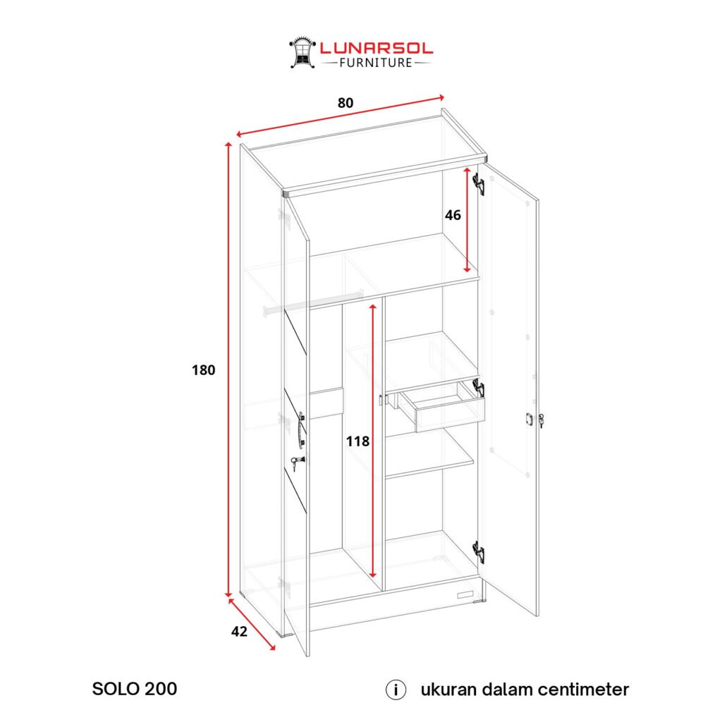 – Dimensi (P x L x T): 80 cm x 42 cm x 180 cm