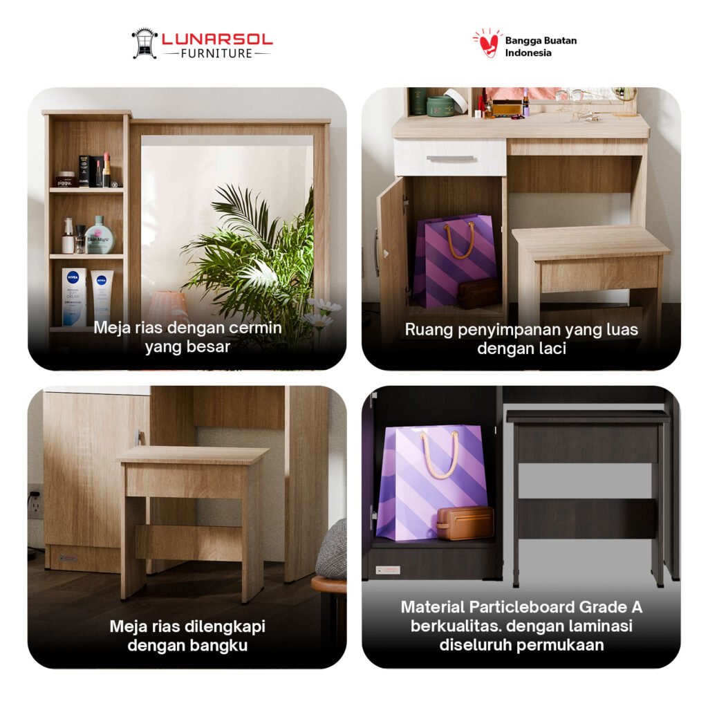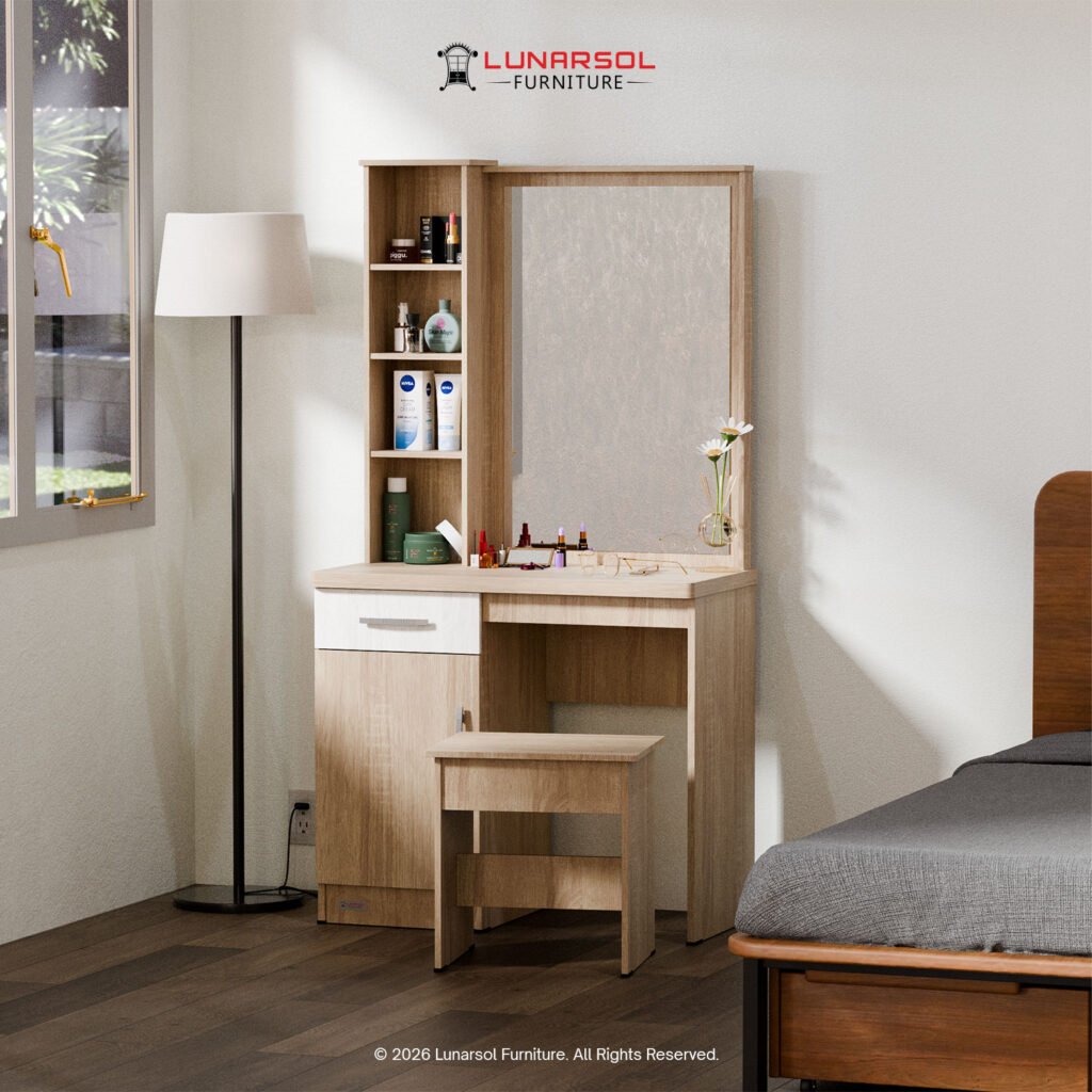 Percantik area personal Anda dengan LUNARSSOL MR-525, meja rias minimalis yang menggabungkan fungsionalitas cerdas dan desain modern. Dilengkapi dengan cermin geser yang tersembunyi, meja rias ini tidak hanya menawarkan area persiapan diri yang praktis tetapi juga ruang penyimpanan tersembunyi yang menjaga kerapian dan estetika ruangan Anda.