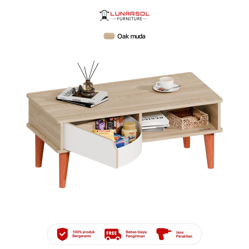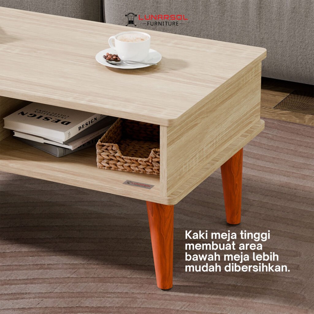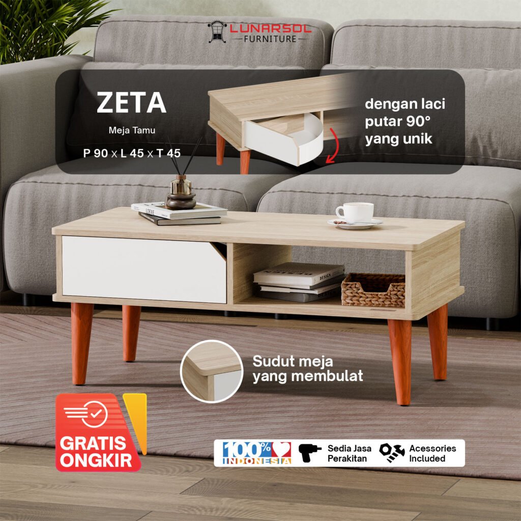 Perbarui tampilan ruang tamu Anda dengan Meja Tamu ZETA yang modern dan minimalis. Meja ini dilengkapi laci putar inovatif untuk penyimpanan praktis dan ruang luas di bawah meja, sempurna untuk menata barang-barang kesayangan Anda. Dengan desainnya yang bersih dan sentuhan warna Oak Muda yang hangat, meja ini akan menjadi focal point fungsional dan estetis di setiap hunian.