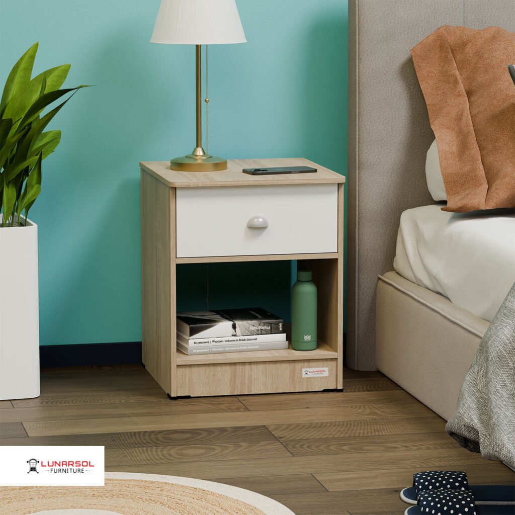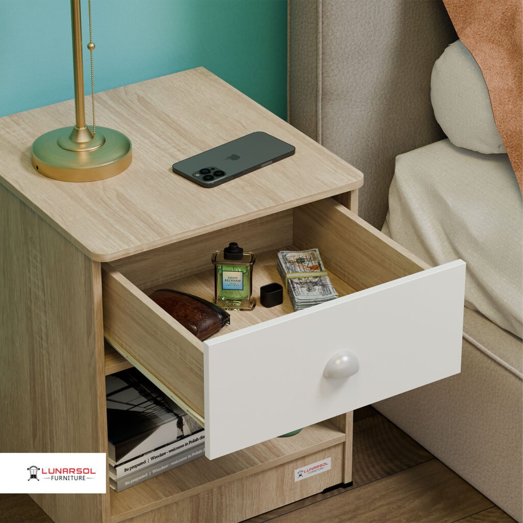 – Kegunaan atau Penempatan: Kamar tidur (sebagai meja samping tempat tidur), ruang tamu (sebagai meja samping sofa).