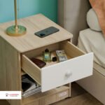 – Warna Dominan: Oak Muda (dengan laci berwarna putih)