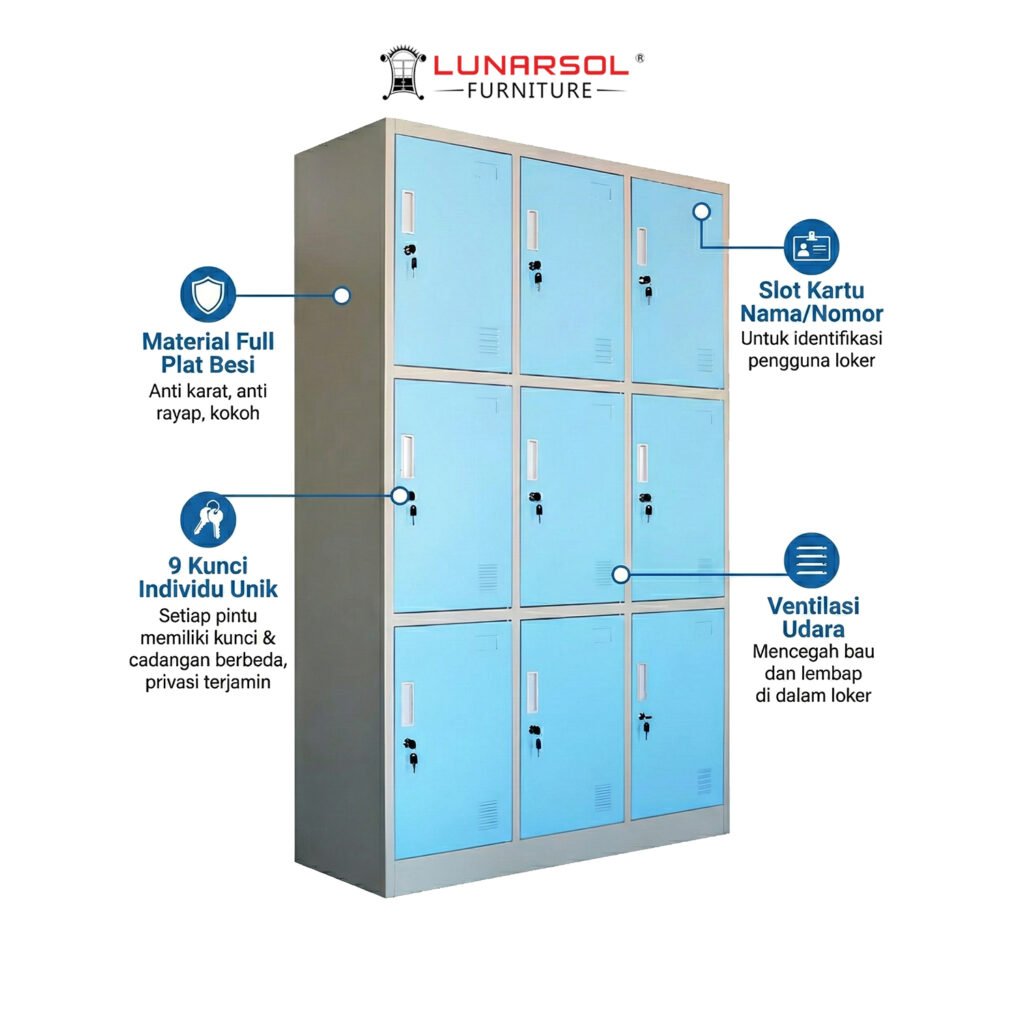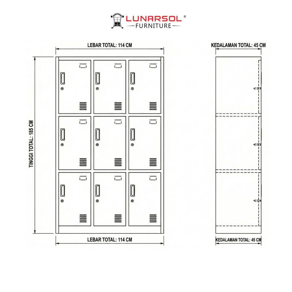 Sediakan penyimpanan personal yang aman dan terorganisir dengan lemari locker 9 pintu LUNARSOL LCX 09. Dirancang khusus untuk kebutuhan penyimpanan individu di area komunal, cabinet locker ini ideal untuk sekolah, pusat kebugaran, pabrik, atau lingkungan kantor.