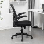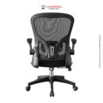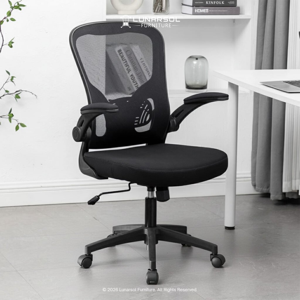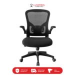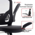 – Arm rest (sandaran tangan) dapat dilipat hingga 90 derajat, memungkinkan kursi didorong lebih dekat ke meja atau disimpan lebih ringkas.