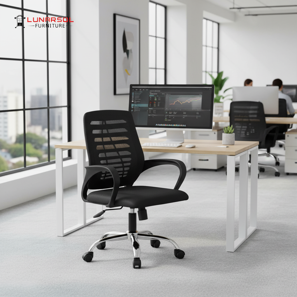 Kursi kantor LUNARSOL KJM 04 adalah pilihan ergonomis dan modern untuk ruang kerja Anda, dirancang untuk memberikan kenyamanan maksimal sepanjang hari. Dengan desain minimalis dan fungsional, kursi ini dilengkapi dengan fitur-fitur yang mendukung postur tubuh ideal dan stabilitas.