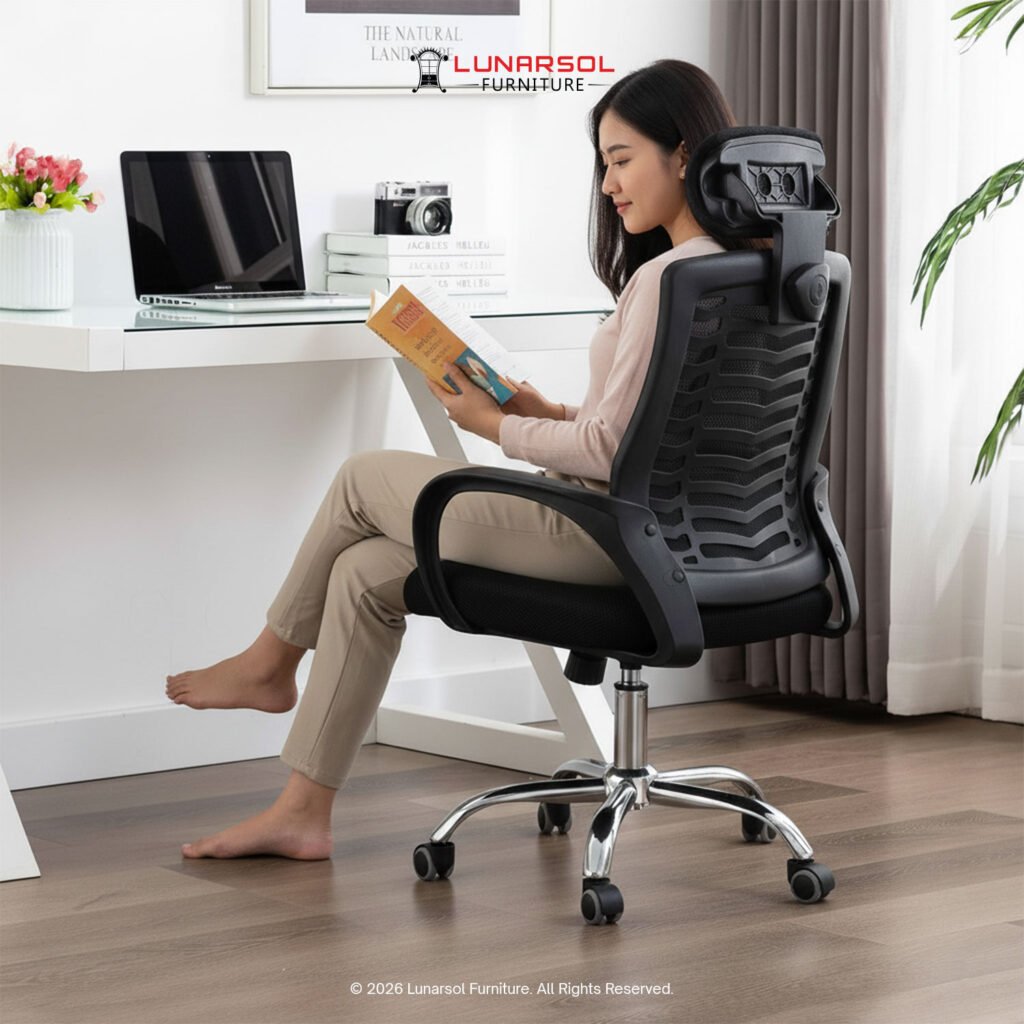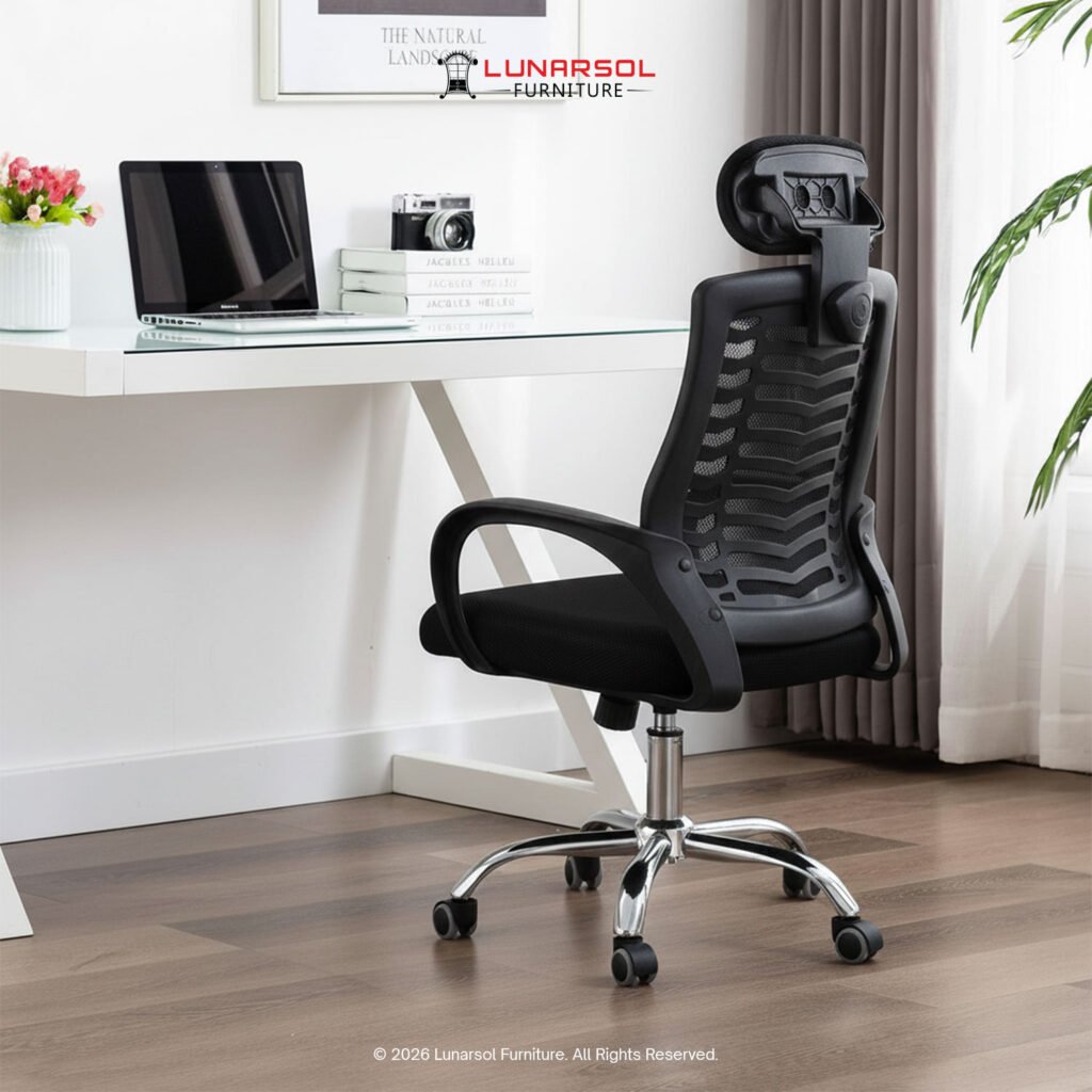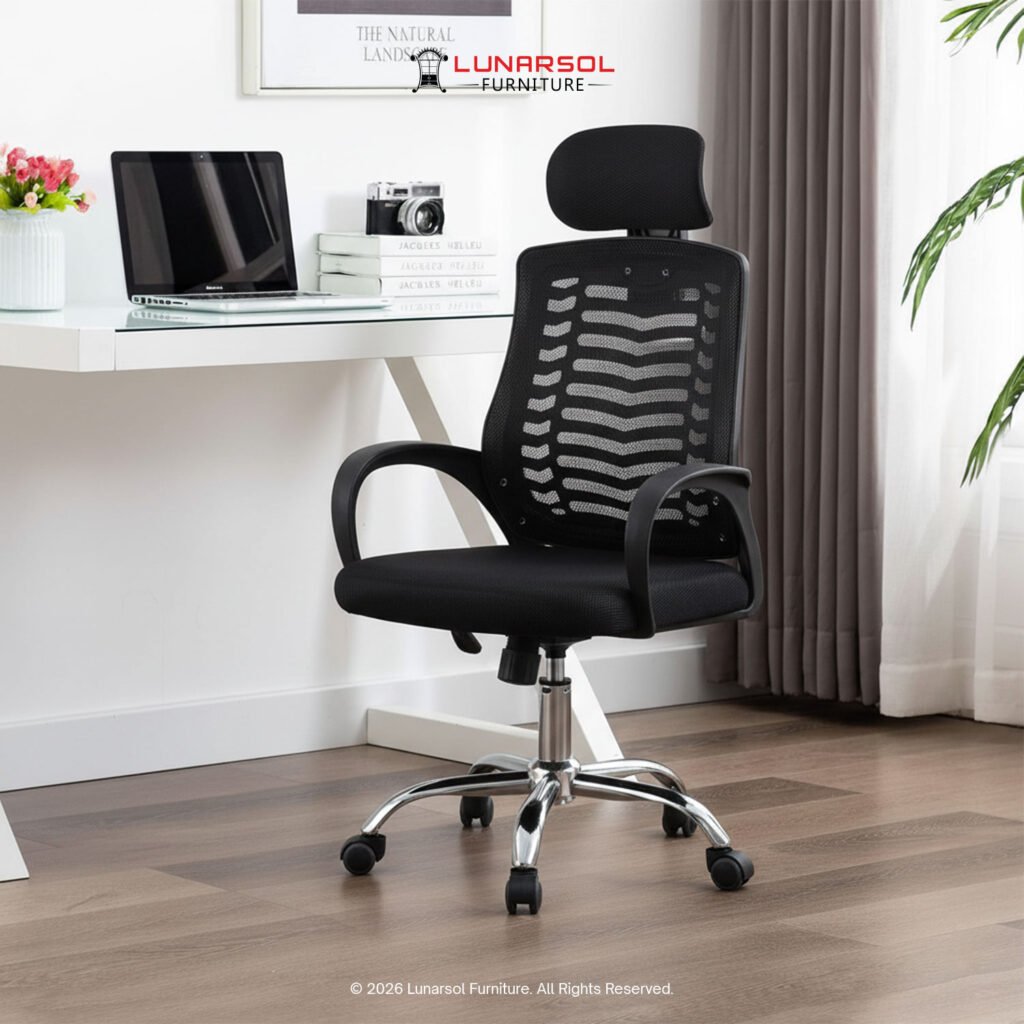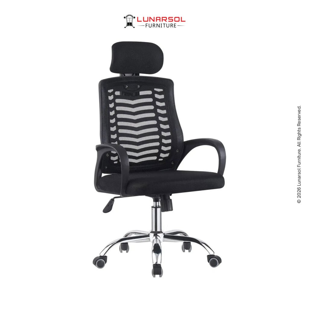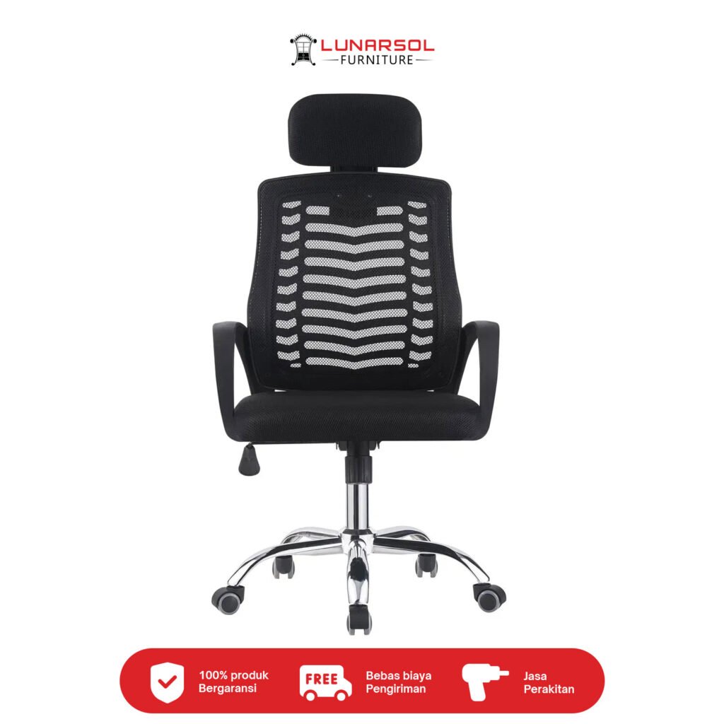 Kursi kantor LUNARSOL KM 700 adalah kursi ergonomis yang dirancang untuk mendukung kenyamanan dan postur tubuh optimal selama berjam-jam kerja. Dengan sandaran jaring yang nyaman dan head rest empuk, kursi ini menawarkan sirkulasi udara yang baik dan dukungan untuk kepala dan leher. Desainnya yang serbaguna dengan sentuhan krom pada kaki menjadikannya pilihan ideal untuk berbagai setting kantor modern.