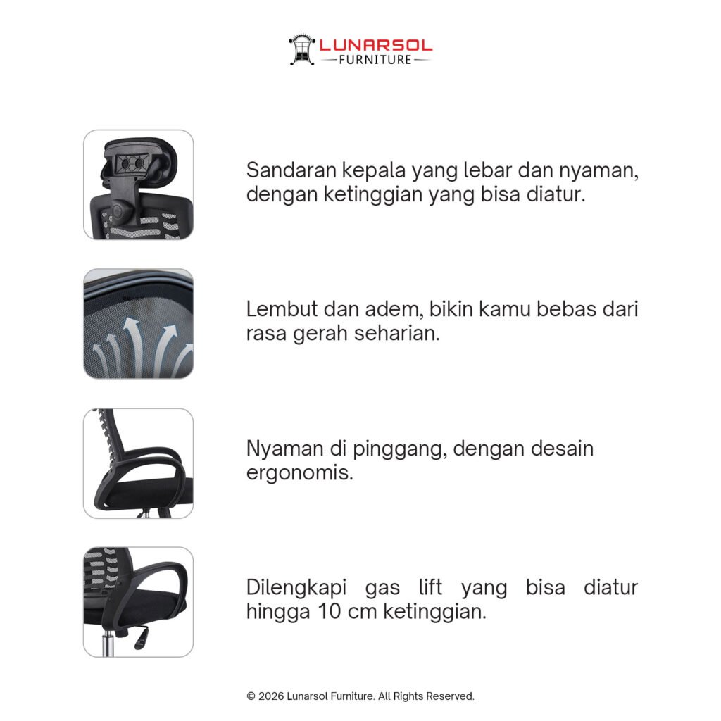 – Sandaran dengan jaring sirkulasi yang nyaman.