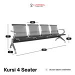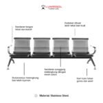 Kursi ruang tunggu 4 seater besi ini dibuat dengan rangka, tempat duduk, dan sandaran full besi yang kokoh dan berkualitas tinggi. Material besi yang digunakan telah melalui proses anti karat (anti-korosi), memastikan kursi ini memiliki ketahanan luar biasa terhadap keausan dan perubahan cuaca. Jika Anda mencari furnitur kantor dengan material yang sama, jelajahi koleksi kursi kantor kami.