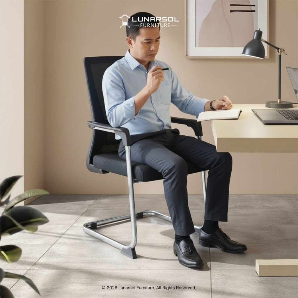 Kursi kantor LUNARSOL LKH 05 adalah pilihan ergonomis dan modern untuk ruang kerja Anda, dirancang untuk memberikan kenyamanan maksimal sepanjang hari. Dengan desain minimalis dan fungsional, kursi ini dilengkapi dengan fitur-fitur yang mendukung postur tubuh ideal dan stabilitas.