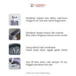 – Head rest yang dapat disesuaikan tingginya (hingga 7 cm).