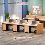 Dibuat dari material Particle Board Grade A dengan tinggi meja 80 cm, workstation ini menjamin durabilitas jangka panjang serta kenyamanan posisi kerja yang lebih ideal bagi karyawan Anda.