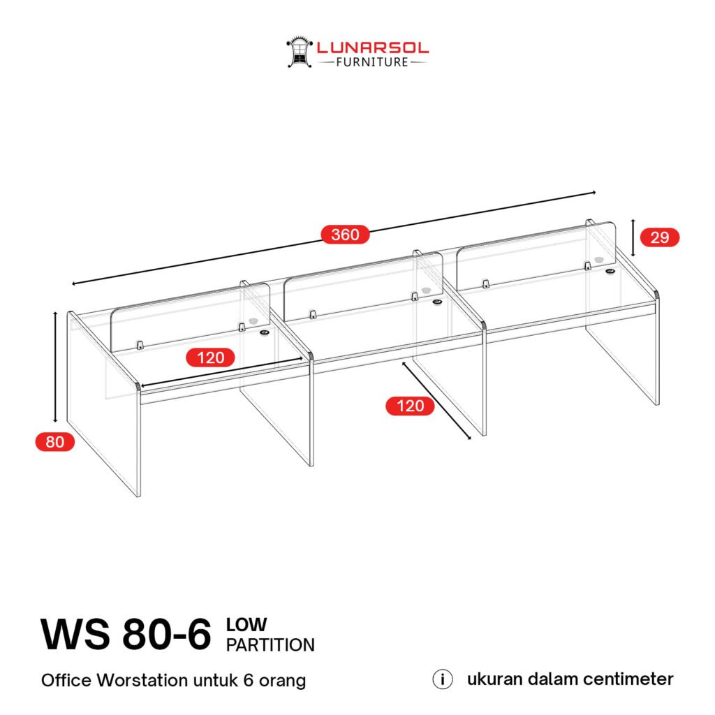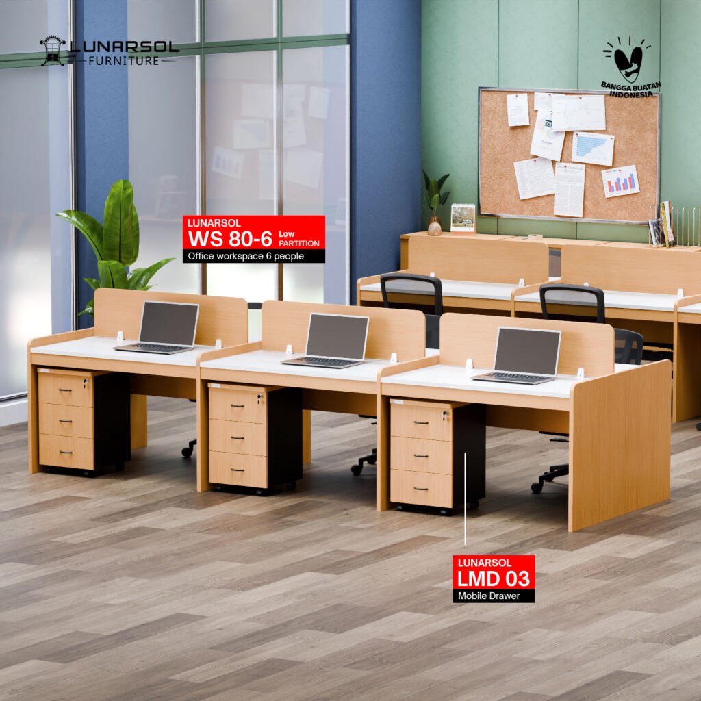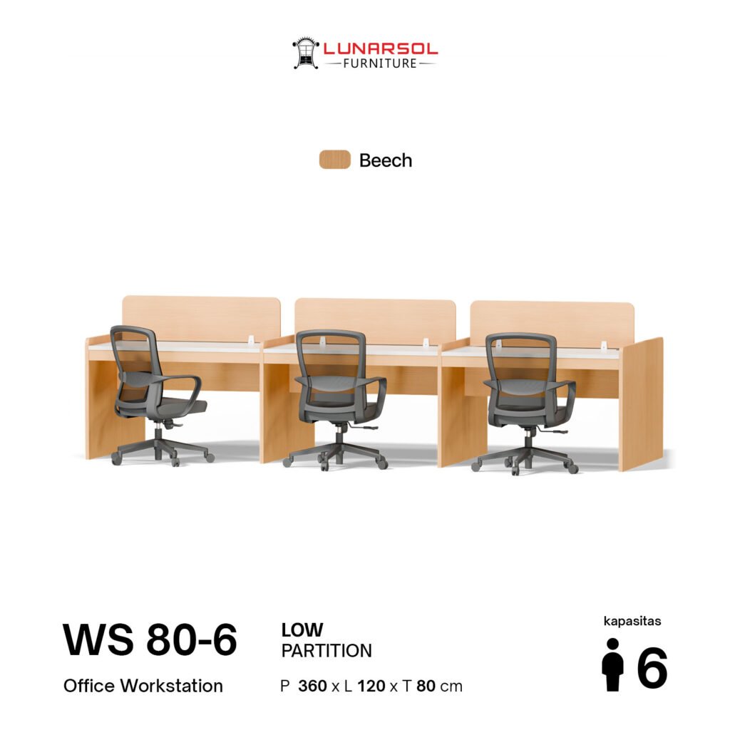 Ciptakan tata ruang kantor yang profesional dan terintegrasi dengan meja workstation 6 seater LUNARSOL WS Series. Konfigurasi 6 seater adalah pilihan terpopuler untuk departemen operasional karena mampu memaksimalkan kapasitas ruangan dalam satu alur yang tetap rapi.