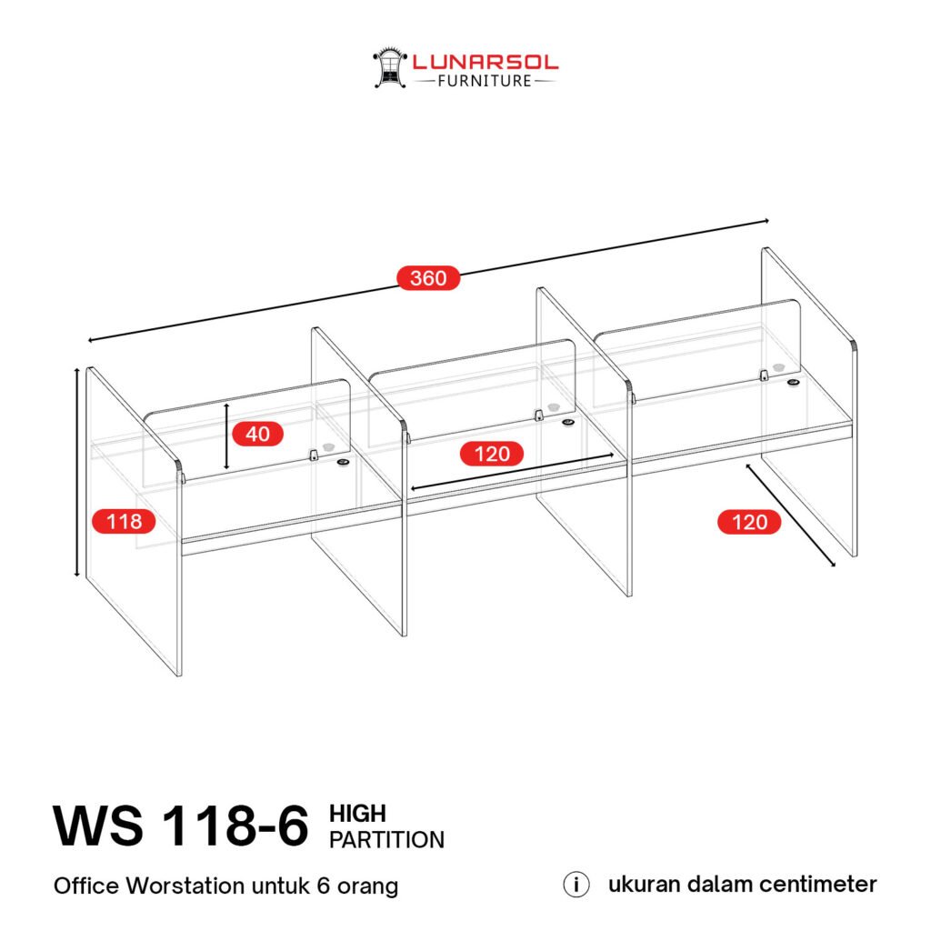 WS 118: Partisi tinggi 40 cm untuk meminimalisir gangguan visual antar rekan kerja.