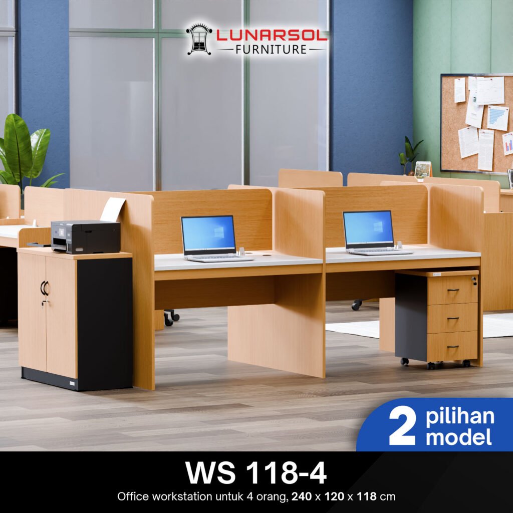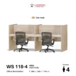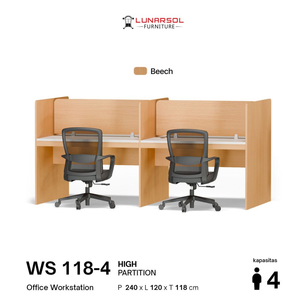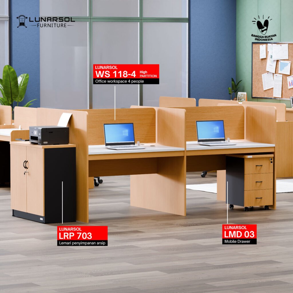 • Varian WS 118 (High Partition): Menggunakan sekat setinggi 40 cm di atas meja, memberikan privasi ekstra untuk konsentrasi tinggi dan meminimalisir gangguan.