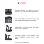 • Sandaran Kepala Adjustable: Bisa diatur naik-turun hingga rentang 7 cm agar pas menyangga leher sesuai dengan tinggi badan pengguna.